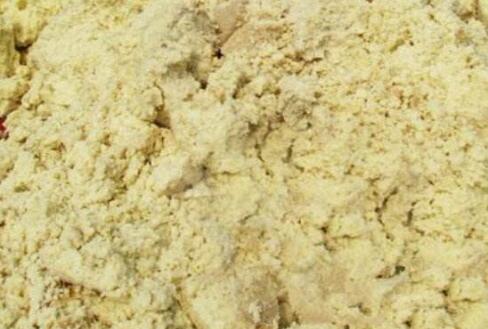 3、然后把拌好的麦麸均匀洒在1000公斤豆渣中,一遍撒,一遍喷洒已经融化好的红糖水,(如果有条件的话,可以用搅拌机搅拌,人工搅拌均匀也完全可以)。
